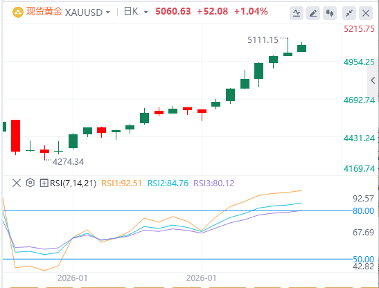 相对强弱指数(RSI)位于70.84,处于超买并开始宽松,这可能让买方保持谨慎,同时XAU/USD汇对在通道内盘整。上方,通道上限价5,156.89美元,价格上限上涨。MACD需回升至看涨跨越点以重新获得上涨空间,而较高的RSI则建议在持续突破前进行消化。若收盘价在瓶顶上方4小时收盘,将为延长上升趋势打开路径;而动能未能改善则使偏差易受通道底进一步测试的风险。