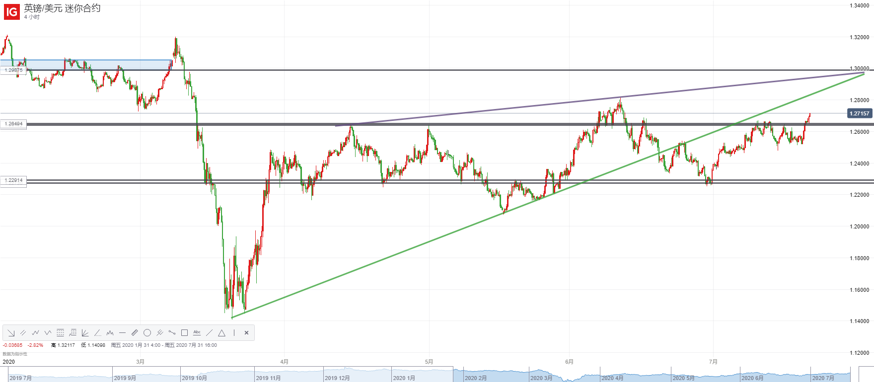 更为重要的是,英镑/美元突破了1.2640-1.2650这一关键阻力区域,这意味着该区域将转化为汇价的关键支持。