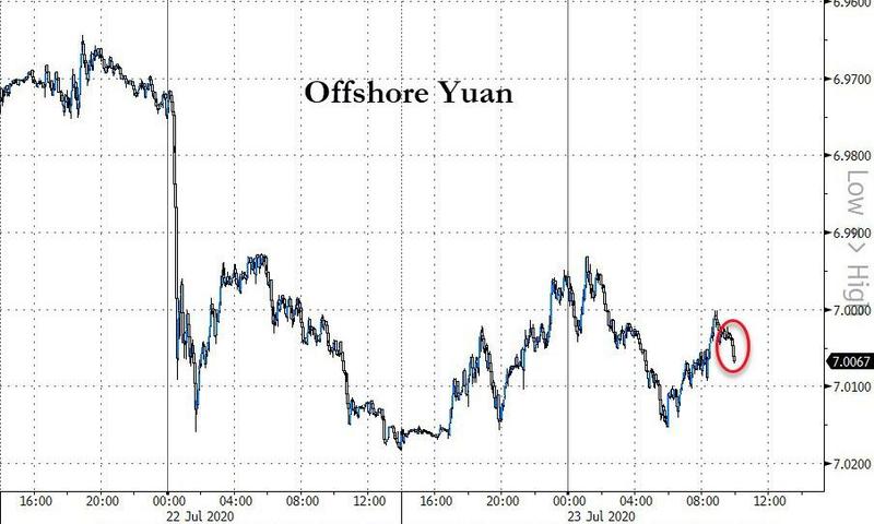 离岸人民币也闻讯下跌。