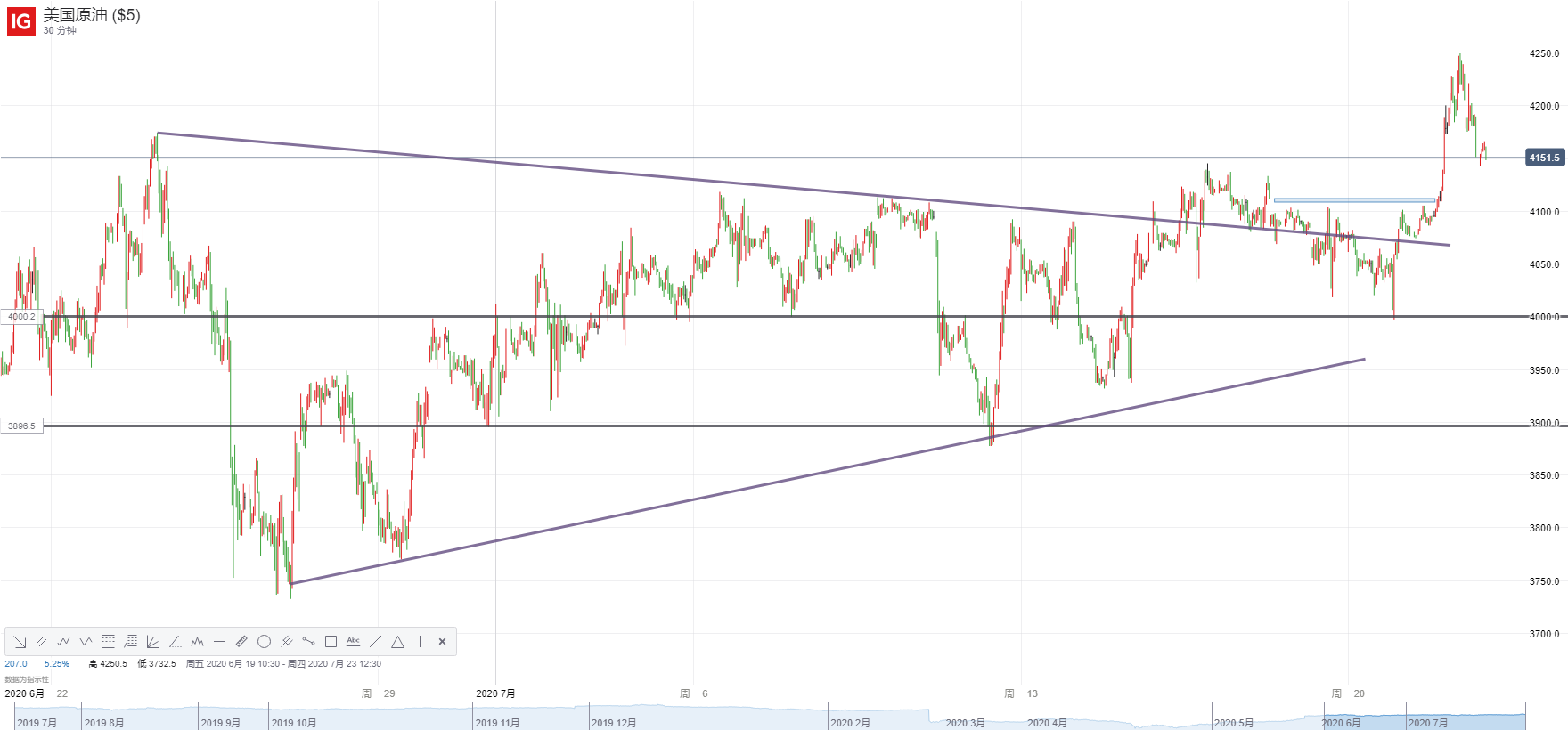WTI原油30分钟图: