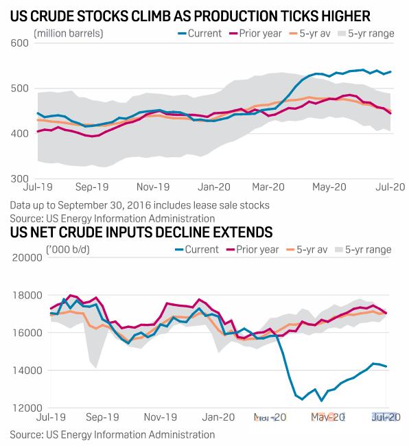 截至7月17日当周,商业原油库存攀升489万桶,至5.3658亿桶,使库存较五年平均水平高出19%,为2017年10月以来最高水平。
