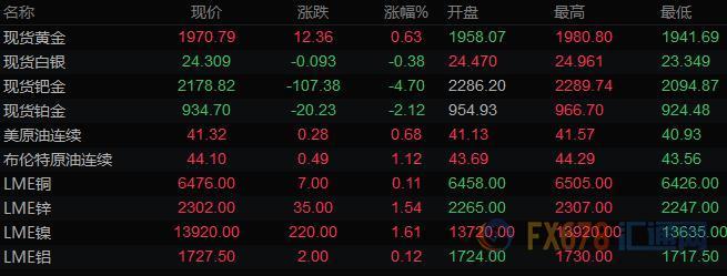 商品收盘方面,COMEX12月黄金期货涨0.7%,收于每盎司1976.70美元。WTI9月原油期货收涨0.23美元,涨幅0.56%,报41.27美元/桶;布伦特9月原油期货收涨0.53美元,涨幅1.23%,报43.75美元/桶。