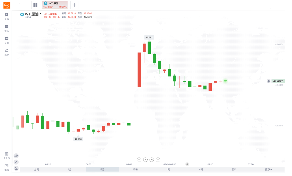 受此影响,周一WTI原油高开并一度短线拉升。