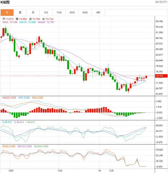 原油周四处于区间震荡,当天最低72.4最高74.5,虽然这个星期原油价格向上发力,多次试探75-76阻力压制节点,但昨日油价的回撤力度接近本周涨幅的2/3。支撑方面留意今日早盘起涨点73.7位置,不过整体来看原油价格无需过分看涨。