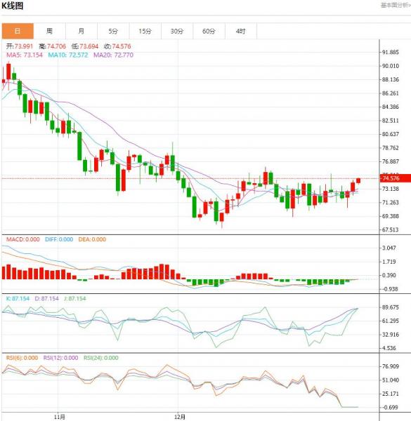 原油价格稳定在小看涨通道的破碎支撑下方,这支持今天预期的看跌趋势的延续,等待获得有助于推动价格迈向70.00开始的预期目标的负面动机,考虑到突破73.73将停止预期的下跌,并推动价格在日内和短期基础上开始复苏尝试。预计今天的交易区间在72.20支撑和75.31阻力之间今日预期走势:看跌。