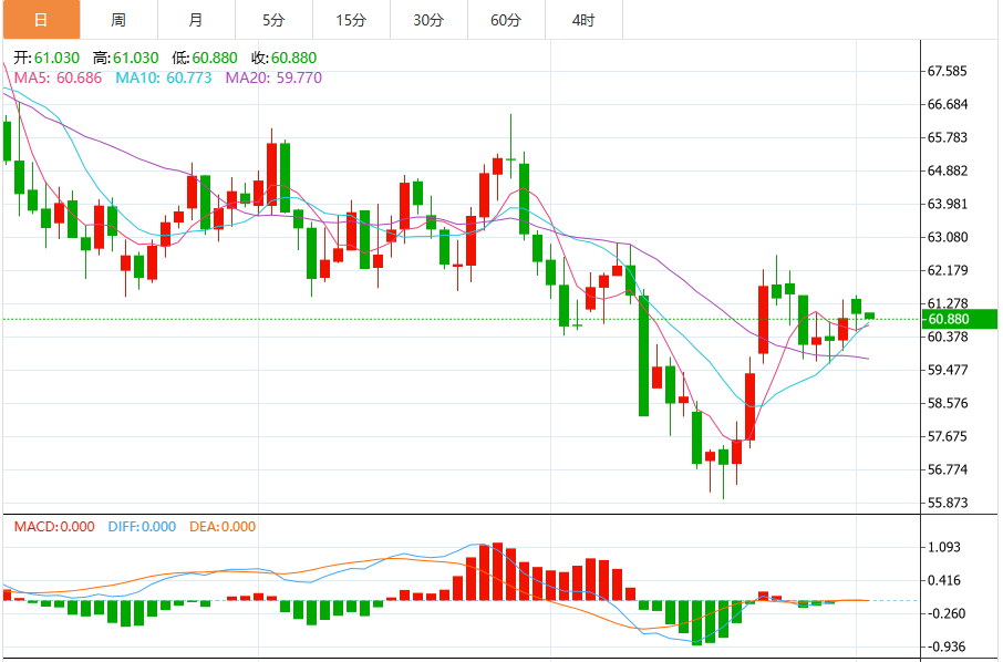 技术上,美原油呈现出箱体震荡格局。价格在触及55.96美元的阶段性低点后展开反弹,随后冲高至62.59美元的高点,标志着一轮幅度可观的技术性反弹完成。当前价格运行在61美元关口附近,从K线形态观察,价格在该区域多次受阻回落,显示出空头在此位置的防守意愿较强,短期内有效突破难度较大。下方支撑方面,59.50美元至59.25美元区域形成了重要的支撑带;这一区间聚集了大量的多头防守盘,构成了当前行情的重要底线。若价格跌破该支撑带,则可能打开进一步下探55.96美元前低的空间。