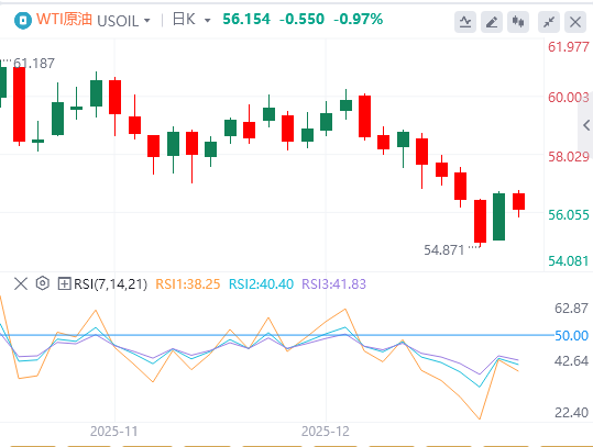 西德克萨斯中质原油(WTI)期货在触及每桶55.27美元附近的收盘低点(为2021年初以来最弱水平)后,已反弹至每桶56-57美元的中段。此番最新走势属于地缘政治引发的波动激增,而非结构性趋势逆转。期货价格是对突然出现的风险溢价作出反应,而非库存趋紧的背景。