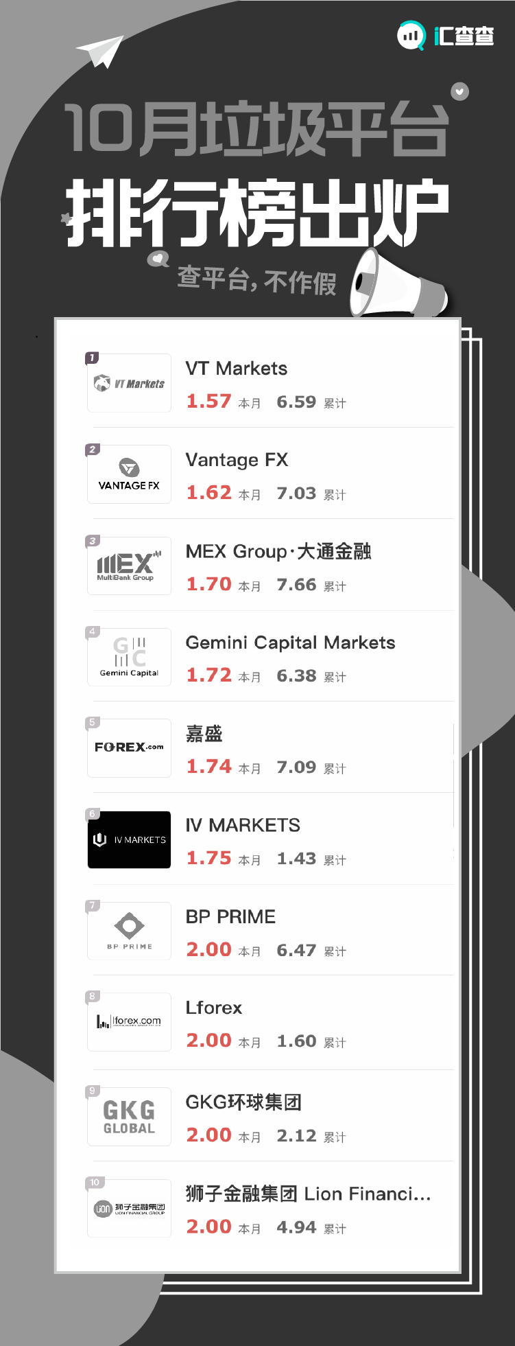 10月的垃圾榜单,又有10家平台因汇友差评而登榜。因为是平台的亲身参与者,汇友们语言格外犀利,也引起了许多人的共鸣。