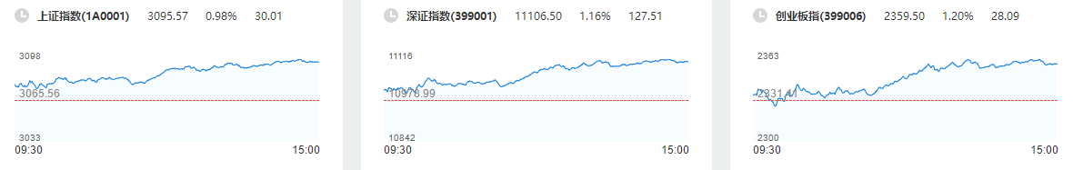 A股受到利好消息的影响,12月27日集体跳空高开。早盘沪深两市维持高位震荡,临近午市前走高涨幅略有扩大。午后两市进一步走高,上涨个股数量增多,三大股指更是均涨超1%,沪指逼近3100点关口。从盘面上看,消费、金融领涨,农业、交通、煤炭涨幅居前,医美、光伏、稀土题材活跃;新冠药物概念股集体下挫。