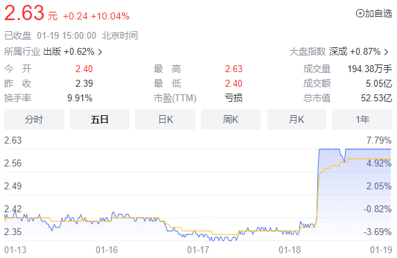 重要资讯:沪深交易所2023年01月19日公布的交易公开信息显示,华闻集团因成为当日涨幅偏离值达7%的证券上榜。华闻集团当日收报2.63元,涨跌幅10.04%,偏离值9.33%,换手率9.91%,成交额5.05亿元。