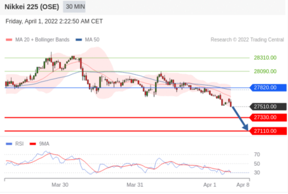 交易策略: 在 27820.00 之下,看跌,目标价位为 27330.00 ,然后为 27110.00 。