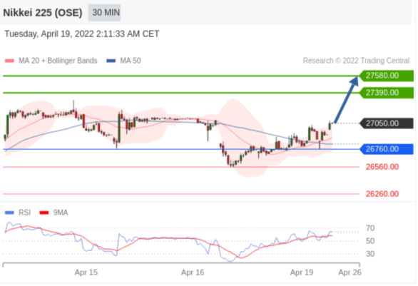 交易策略: 在 26760.00 之上,看涨,目标价位为 27390.00 ,然后为 27580.00 。