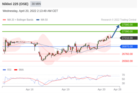 交易策略: 在 26970.00 之上,看涨,目标价位为 27390.00 ,然后为 27580.00 。