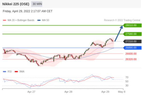在 26890.00 之上,看涨,目标价位为 27580.00 ,然后为 28010.00 。