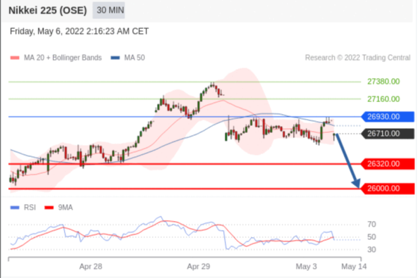 交易策略: 在 26930.00 之下,看跌,目标价位为 26320.00 ,然后为 26000.00 。