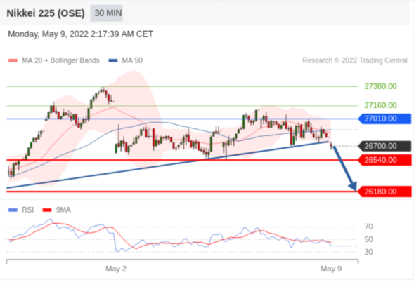 交易策略: 在 27010.00 之下,看跌,目标价位为 26540.00 ,然后为 26180.00 。