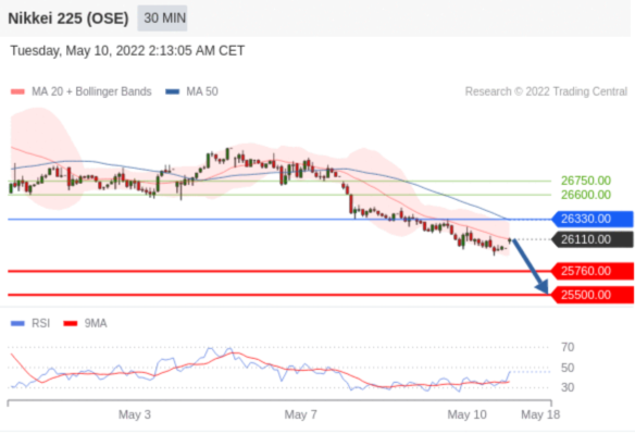 在 26330.00 之下,看跌,目标价位为 25760.00 ,然后为 25500.00 。