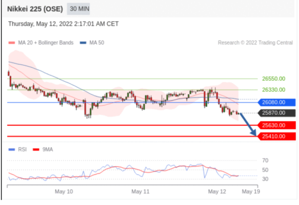 交易策略: 在 26080.00 之下,看跌,目标价位为 25630.00 ,然后为 25410.00 。