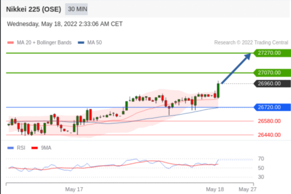 交易策略: 在 26720.00 之上,看涨,目标价位为 27070.00 ,然后为 27270.00 。