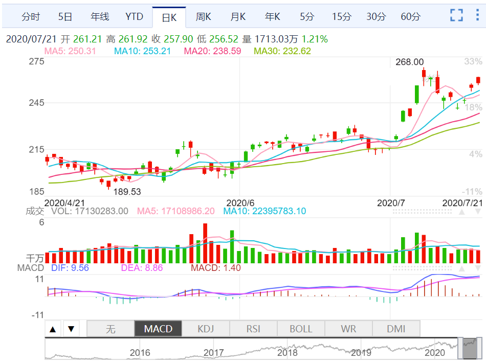 最新股价:257.90