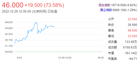 今日走势分析:星空华文(06698)上市首日表现抢眼,早盘股价高开23%后持续走强,最高触及49.50港元。公司本次招股发行价为每股26.5港元,预计净集资约3.2亿港元。星空华文是中国最大综艺节目IP创造商及运营商,今年上半年实现收入1.83亿元,毛利率达到30.9%。截至发稿,星空华文涨84.15%,报48.80港元,成交额0.43亿港元。