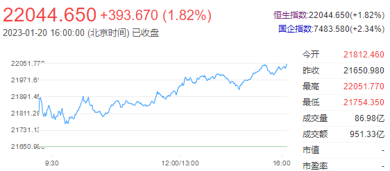 今天是虎年最后一个交易日,港股高开高走,三大指数集体收涨,恒指涨1.82%冲上22000点,创2022年7月5日新高;恒生科技指数涨2.67%,国指涨2.34%刷新去年7月中旬新高。大市成交额为951亿港元。港股后市展望,中信证券预计互联网和数字经济有望在2023年的经济复苏过程中继续扮演重要角色。其中互联网平台受益于消费复苏和龙头降本增效的持续推进,业绩有望逐季改善,细分领域包括OTA、本地生活服务、电商、游戏、广告;数字经济相关行业包括计算机(云化、安全领域)、通信设备。