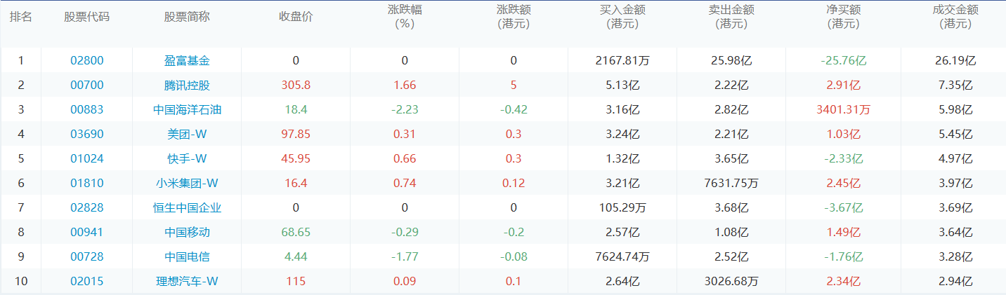 今日港股通数据一览:腾讯控股净买入额居首额(2024/4/18)