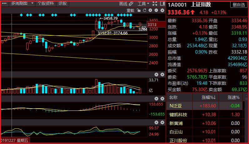 2.本周在技术指标偏向多头方向,大盘收复牛熊线后向上攻击后,高位震荡;