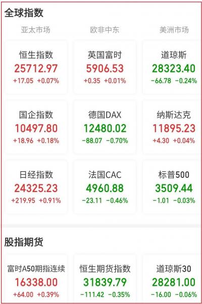 亚太股市方面,日经225指数涨0.91%,收于24325.23点,全周收涨5.87%。韩国KOSPI指数收涨0.11%,收于2416.50点,全周收涨6.59%。澳大利亚指数收涨0.80%,收于6395.00点,全周收涨4.27%。