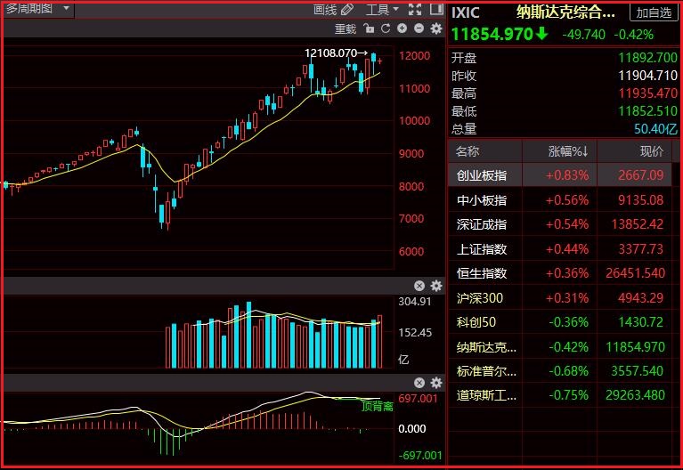 美东时间周五,美股三大指数小幅收跌,截止收盘,道指跌0.75%,报29263.48点;纳指跌0.42%,报11854.97点;标普500指数跌0.68%,报3557.54点。个股方面,汽车类中概股表现强势,开心汽车涨逾100%,报6.06美元,多只造车新势力股价创收盘历史新高,其中小鹏汽车涨超12%,报53.89美元,市值一度超过400亿美元;理想汽车涨超3.7%,蔚来涨超1.6%。此外,业绩增速放缓,教育股跟谁学跌近8%,盘初一度跌近25%。
