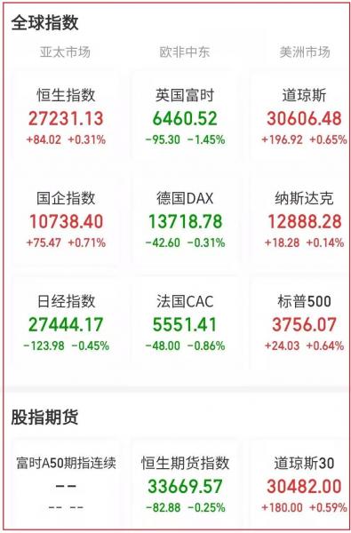 在欧洲各国股市中,德国DAX 30指数收涨0.97%,报收于13718.78点;英国富时100指数收跌0.64 %,报收于6460.52点;法国CAC 40指数收涨0.53%,报收于5551.41点。与此同时,意大利富时MIB指数收涨0.46%,报收于22232.90点。