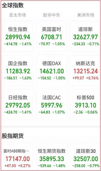 在欧洲各国股市中,德国DAX 30指数收涨0.82%,报收于14621.00点;英国富时100指数收跌0.78%,报收于6708.71点;法国CAC 40指数收跌0.80%,报收于5997.96点。与此同时,意大利富时MIB指数收涨0.36%,报收于24199.42点。