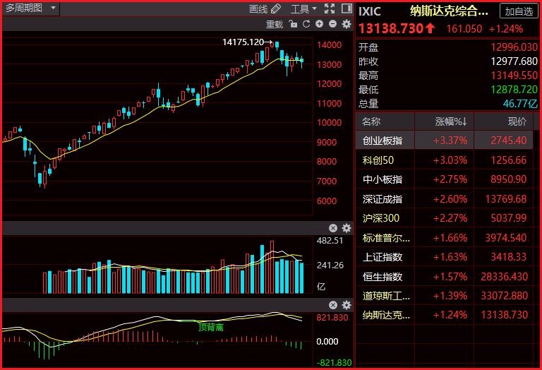 美东时间周五,美股收涨,三大指数涨幅均超过1%,道指、标普500指数创收盘历史新高。盘面上,大型科技股、芯片股、油气股、航运股普涨,部分教育类中概股大跌。截止收盘,道指涨453.40点,涨幅1.39%,报33072.88点;纳指涨161.05点,涨幅1.24%,报13138.73点;标普500指数涨65.02点,涨幅1.66%,报3974.54点。