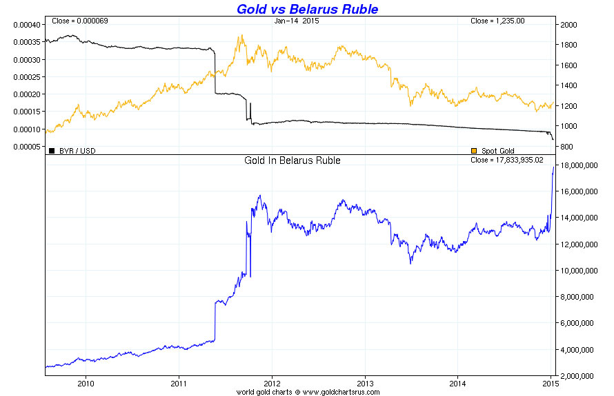 黄金和黄金股因上周瑞士央行宣布不再继续使用瑞郎兑欧元汇率上限后出奇制胜,大幅暴涨。这突显了黄金的作为储藏手段的价值,汇率的波动影响到购买力,在过去的一年中,汇率也起到了宝贵的作用。