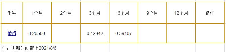 8月6日新加坡银行间同业拆借利率坡币: