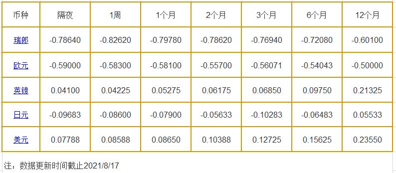 8月17日伦敦银行同业拆借利率: