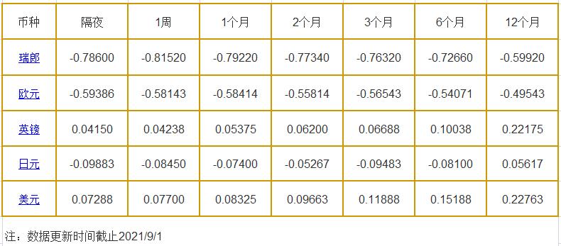 9月1日伦敦银行同业拆借利率: