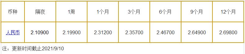 9月10日中国银行间同业拆借利率人民币: