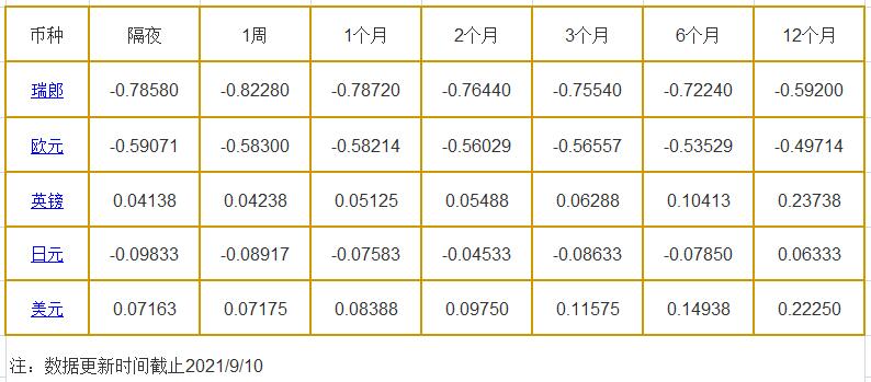 9月10日伦敦银行同业拆借利率: