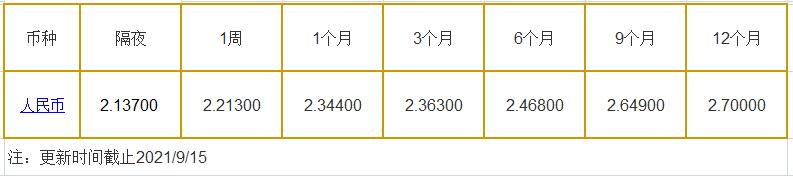 9月15日中国银行间同业拆借利率人民币: