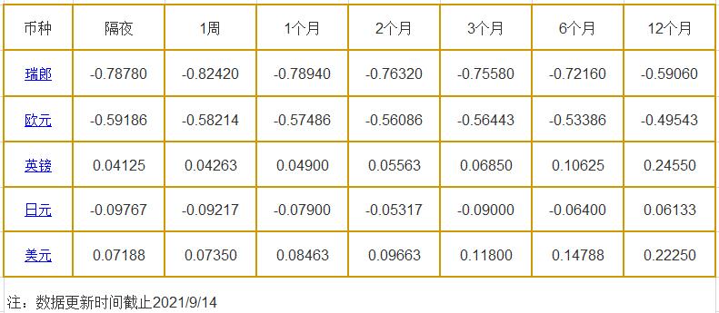 9月14日伦敦银行同业拆借利率: