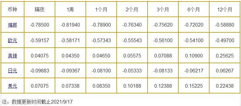 9月17日伦敦银行同业拆借利率: