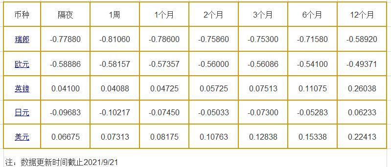 9月21日伦敦银行同业拆借利率: