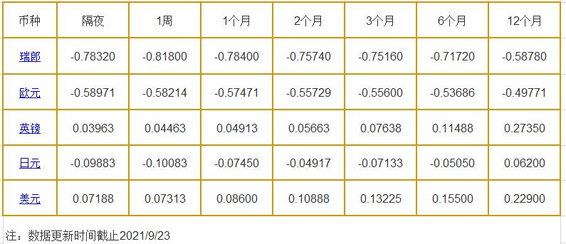 9月23日伦敦银行同业拆借利率: