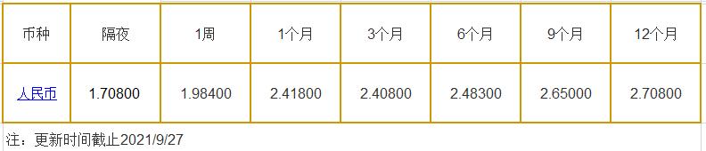 9月27日中国银行间同业拆借利率人民币: