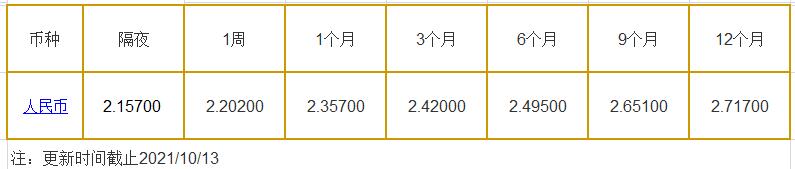 10月13日中国银行间同业拆借利率人民币: