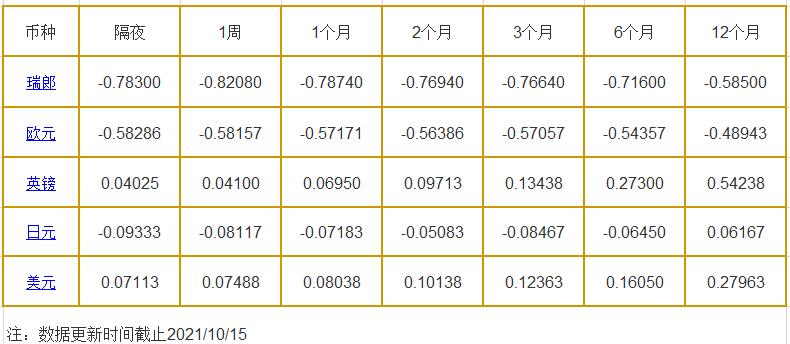 10月15日伦敦银行同业拆借利率: