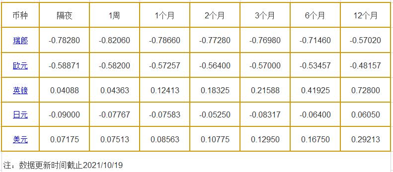 10月19日伦敦银行同业拆借利率: