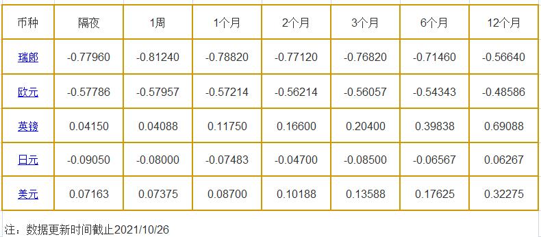 10月26日伦敦银行同业拆借利率: